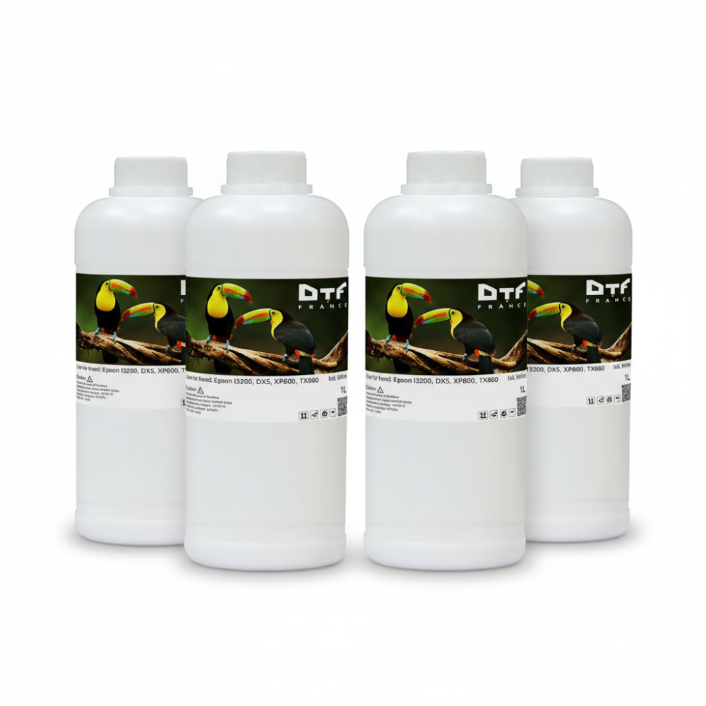 La tinta para transferencia de película DTF para impresoras DTF está especialmente diseñada para satisfacer las exigencias de los profesionales de la impresión sobre película: excelente adhesión y blanco opaco. Con una fórmula de alta calidad y compatibilidad garantizada con el cabezal de impresión Epson i3200, esta tinta blanca DTF garantiza resultados excepcionales para todos tus proyectos de impresión DTF. Ideal para profesionales del marcaje textil que buscan una calidad de impresión impecable.