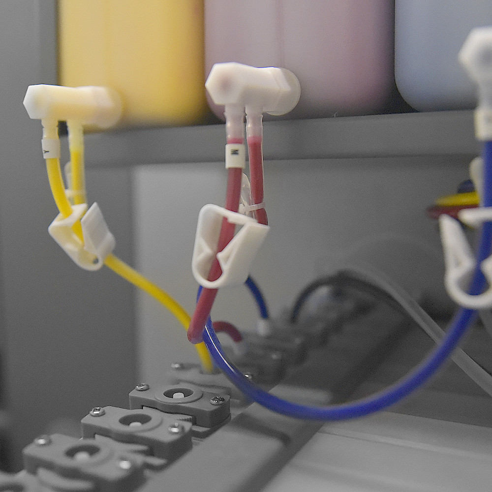 Il permet de sécuriser le débranchement des tubes, d’éviter les fuites et de travailler proprement lors du remplacement de damper, tête d’impression, filtre ou pompe.